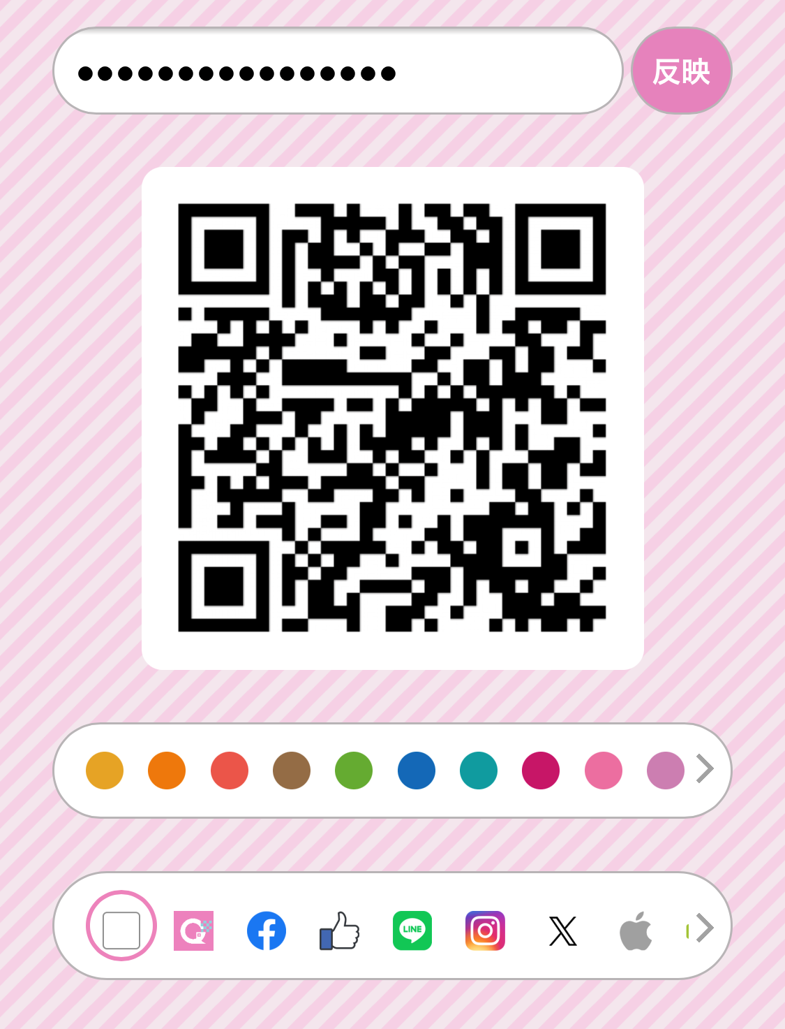 色やアイコンを変更することもできます。ダウンロードする場合はQRコードを長押ししてください。(QRコード取得はWEB版をご利用ください)。