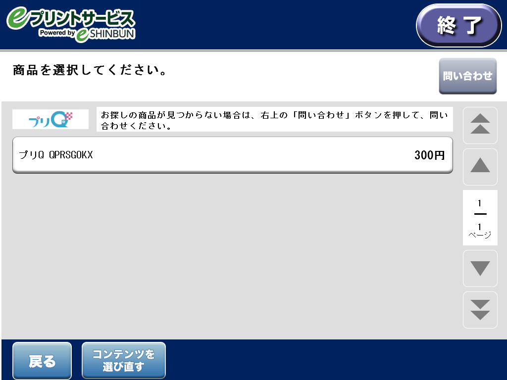 8.プリQで発行したコンテンツ番号を入力して「次へ進む」を選択し購入に進みます。